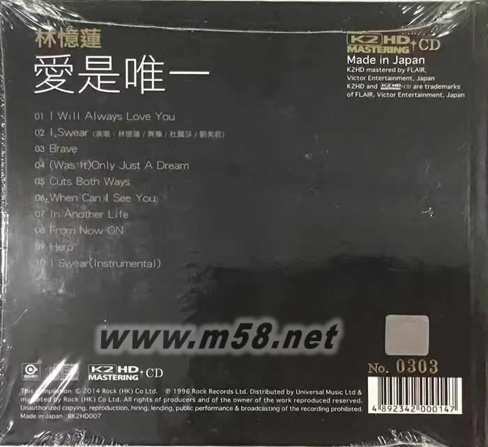愛是唯一 K2HD 黑色封面專輯背面圖片