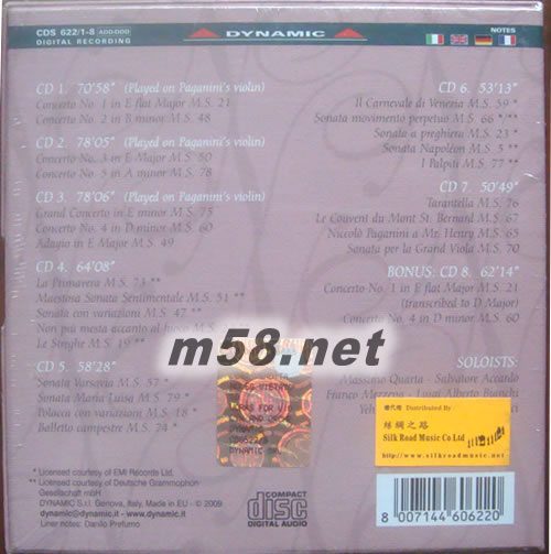 帕格尼尼 全球首套 完整的給小提琴及樂團的作品集 8CD套裝(m58.net)
