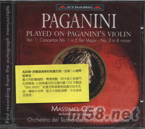 意大利飲譽國際、奪獎無數阿卡度之得意門生夸爾達,以柏格尼尼的瓜爾內里1742年製造“DEL GESU”珍貴名琴演奏帕格尼尼首本名曲,首次以原音調演奏降E大調第1小提琴協奏曲及首次錄音採用柏格尼尼簽名原樂譜手稿演奏B小調第2小提琴協奏曲。傳說中名琴,配合大師級演繹,令名曲原音重現。
