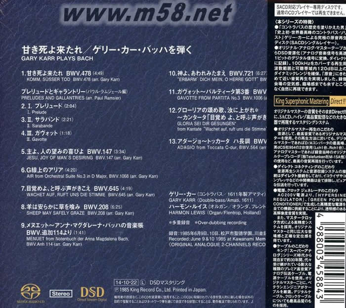 低音大提琴 巴赫作品 GARY KARR PLAYS BACH 單層SACD(m58.net) 僅限SACD機播放