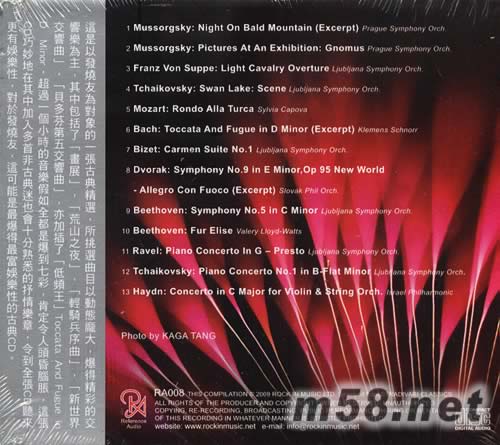 這是以發燒友為對象的一張古典精選,所挑選曲目以動態龐大,爆得精彩的交響樂為主,其中包括了「畫展」,「荒山之夜」,「輕騎兵序曲」,「新世界交響曲」,「貝多芬第五交響曲」亦加插了低頻王Toccata And Fugue in D Minor,超過一個小時的音樂假如全都是爆到七彩,肯定令人頭昏腦脹,這張CD巧妙地在其中加入多首非古典迷