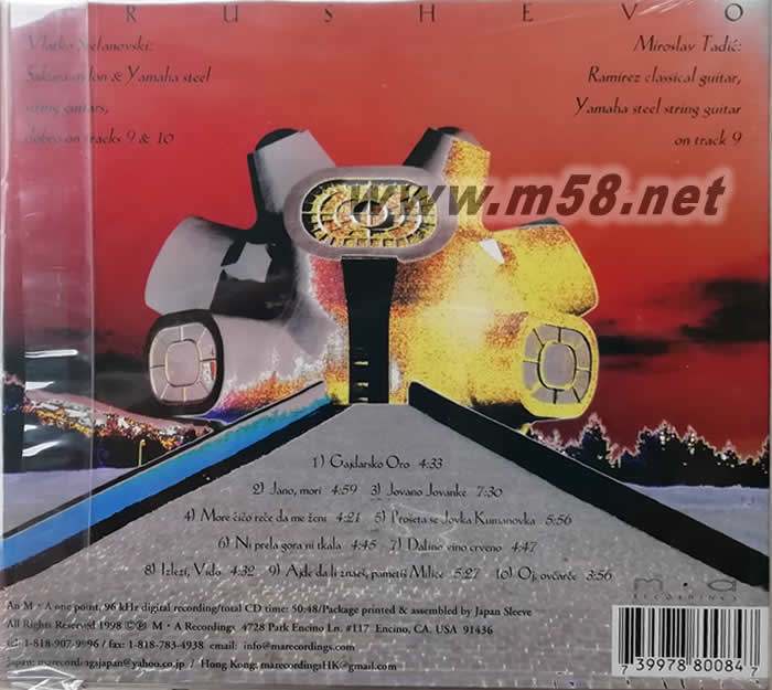 MA 負責(zé)人 Todd 認識二位吉他圣手,一位是在馬其頓呼風(fēng)喚雨 Vlatko Stefanovski,一位是南斯拉夫樂壇上倍受推崇的 Miroslav Tadic,把兩人集合起來出專輯,讓不少吉他樂迷大飽耳福。二把吉他唱和默契佳,演奏技巧更是一把罩,我對面的編輯同仁洪瑞鋒說:「回家把燈關(guān)掉,好好聽這張專輯,真的是太享受了……」--313 期音響論壇 資深編輯周靖庭