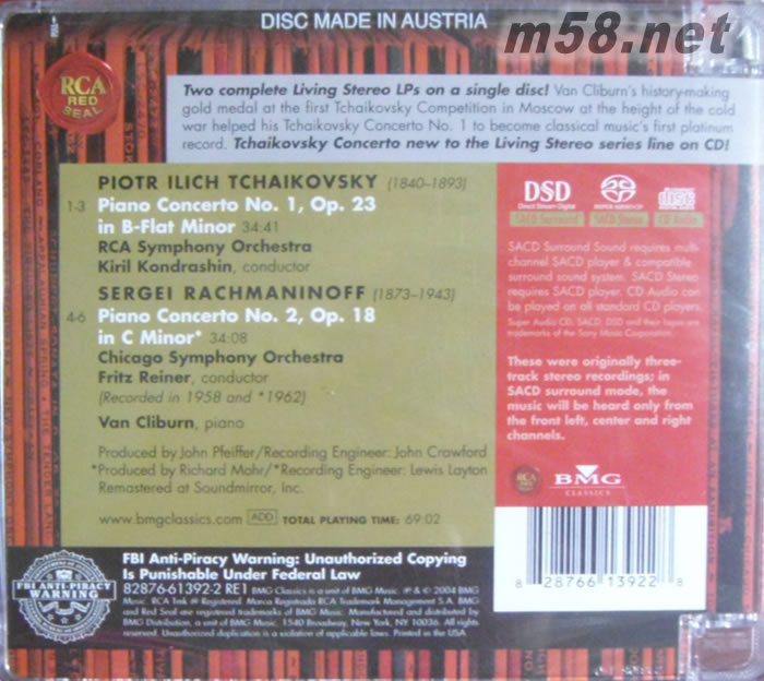 柴可夫斯基:第一號鋼琴協奏曲/范克萊本 TCHAIKOVSKY PIANO SACD特惠專輯背面圖片