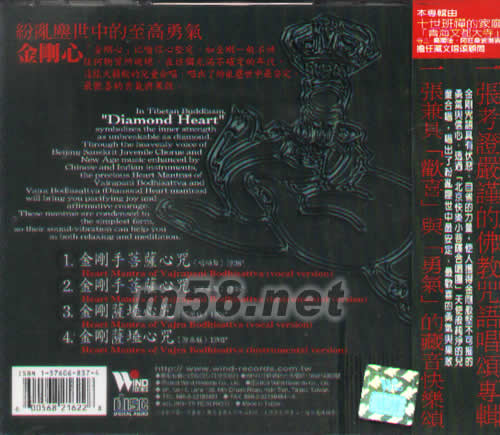 喜歡金剛心(m58.net) [北京快樂小菩薩合唱團]天籟般純凈的歌聲 ,搭配中國,印度傳統(tǒng)樂器 詮釋出最好聽,最歡喜,最勇敢的安定咒語 本專輯由十世班禪的家廟[青海文都大寺]寺主--噶爾哇·啊旺桑波喇嘛但任藏文唱頌顧問 一張考證嚴謹?shù)姆鸾讨湔Z唱頌專輯 一張兼具[歡喜]與[勇氣]的藏音快樂頌 金剛咒語具有伏惡、自省的力量,使人獲得金剛般堅不可摧的勇氣與信心。透過[北京快樂小菩薩合唱團]天使般純凈的兒童合唱,唱出了紛亂塵世中最安定、最歡喜的勇氣與果敢