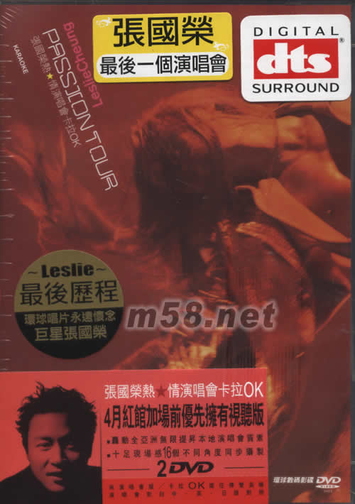 張國(guó)榮熱情演唱會(huì)卡拉OK DVD DTS版(m58.net) 二千年最熱情奔放,最多人談?wù)摰囊粋€(gè)演唱會(huì),除了張國(guó)榮的舞臺(tái)演出及假發(fā)、短裙外,更重要的當(dāng)然是悅耳的好歌,除了演唱會(huì)主題曲「大熱」,及一些較新的歌曲如「左右手」」、「路過(guò)蜻蜓」及「寂寞有害」外,一些成名曲如「?jìng)?cè)面」、「儂本多情」等都齊備,絕對(duì)算是張國(guó)榮的樂(lè)壇全紀(jì)錄。