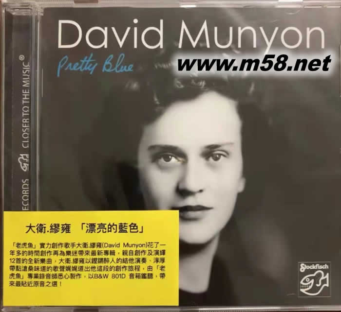 <老虎魚(Stockfisch)>又一實力創作歌手大衛.繆雍(David Munyon),亦是出色油畫家的他善於將他所抒發的情感與音樂和油畫融為一體,帶來如詩如畫的音樂風格,令人心曠神怡,好讓疲累的身心得以暫竭。上張專輯<大履子(Big Shoes)>重新演繹多首經典名曲大獲好評,花了一年多的時間創作,再為樂迷帶來最新專輯<漂亮的藍色(Pretty Blue)>,親自創作及演繹12首的全新樂曲包括[占美的結他(Jimi’s Guitar)]、[在她眼里的憐憫(Mercy In her Eye)]、[漂亮的藍色(Pretty Blue)]與及[情人請擁抱我(Lover Hold Me Now)]等,大衛.繆雍以鏗鏘醉人的結他演奏、淳厚帶點滄桑味道的歌聲娓娓道出他這段的創作旅程,由<老虎魚>專業錄音師悉心製作,以B&W 801D 音箱鑑聽,帶來最貼近原音之選!