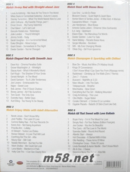 華納唱片2011年頭炮精選專輯《Music & Wine》,請來著名音樂 / 美酒達人劉偉民嚴選數十首與葡萄酒絕配的歌曲,6CD收錄歌手包括: Norah Jones、Olivia Ong、Stacey Kent、Lisa Ono、Keren Ann、Corrine Bailey Rae、Louis Armstrong、Jose Padilla、Linda Ronstadt 等等。