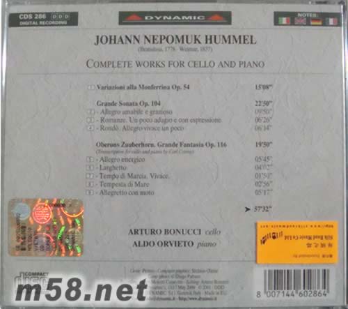 HUMMEL COMPLETE WORKS FOR CELLO AND PIANO大提琴與鋼琴專輯背面圖片