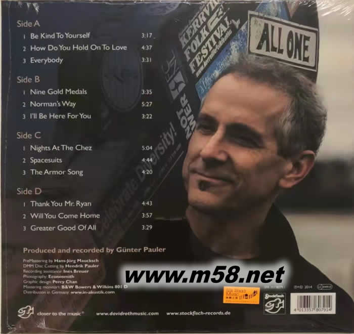 全球樂迷最鐘愛的創作歌手大衛.羅斯(David Roth),既有「民歌天王」的美譽,同時亦被推許為「發燒男聲天王」,以長達八年時間所悉心泡制的全新專輯<你會回家嗎(Will You Come Home)>,帶來12首親自創作的歌曲包括[善待自己(Be Kind To Yourself)]、[你如何堅持去愛(How Do You Hold On To Love)]、[每個人(Everybody)]、[9枚金牌(Nine Gold Medals)]、[諾曼之路(Norman´s Way)]、[為了你我會在這里(I´ll Be Here For You)]、[於桑切斯的晚上(Nights At The Chez)]、[太空服(Spacesuits)]、[盔甲之歌(The Armor Song)]、[謝謝你瑞安先生(Thank You Mr. Ryan)]、[你會回家嗎(Will You Come Home)]、[所有的更好美事(Greater Good Of All)],羅斯以歌曲將他這八年期間所經歷的珍貴片段一一記錄下來,並以歌聲傳達給樂迷,羅斯真摰感人的歌聲、醇厚的和聲、不可抗拒的結他弦樂,高超的錄音水平和音效,配以45轉、180克、1:1直刻母盤、處女膠製成、完全德國製造的雙碟裝黑膠盤推出,人聲、結他聲倍添無限的立體空間感、更為立體真實,更接近原樂器及人聲。
