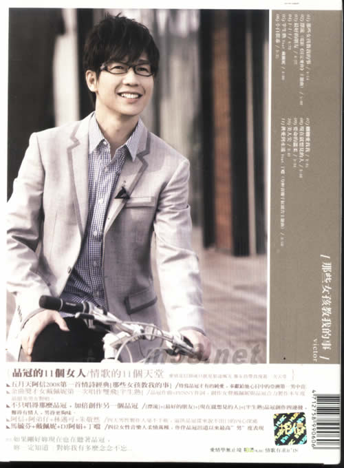 那些女孩教我的事(首批手札情緣精裝版)(m58.net) 品冠的11個女人/情歌的11個天堂 愛情是信仰或只能是旅途風光 那女孩帶我漫游一次天堂 PS.如果剛好妳現在也在聽著品冠﹐妳一定知道:對妳我有多麼念念不忘… ■五月天阿信2008第一首情詩經典[那些女孩教我的事] 特寫品冠才有的純愛﹐奉獻給他心目中的亞洲第一男中音 ■金曲獎才女戴佩妮第一次唱作雙飛[半生熟] 品冠作曲+PENNY作詞﹐創作女聲戴佩妮與品冠合力製作本年度 最甜美男女對唱。 ■不只唱得那麼品冠﹐加倍創作另一個品冠 [漂流]+[最好的朋友]+[現在就想見的人]+[半生熟]品冠創作四連發﹐ 難得有情人﹐男得更夠味。 ■ 阿信+阿弟仔+林邁可+朱敬然 四大男性製作人毫不手軟﹐逼供品冠從來說不出口的內心深處 ■馬毓芬+戴佩妮+DJ阿娟+丁噹 四位女性音樂人柔情萬種﹐作伴品冠出道以來最高”男”度表現