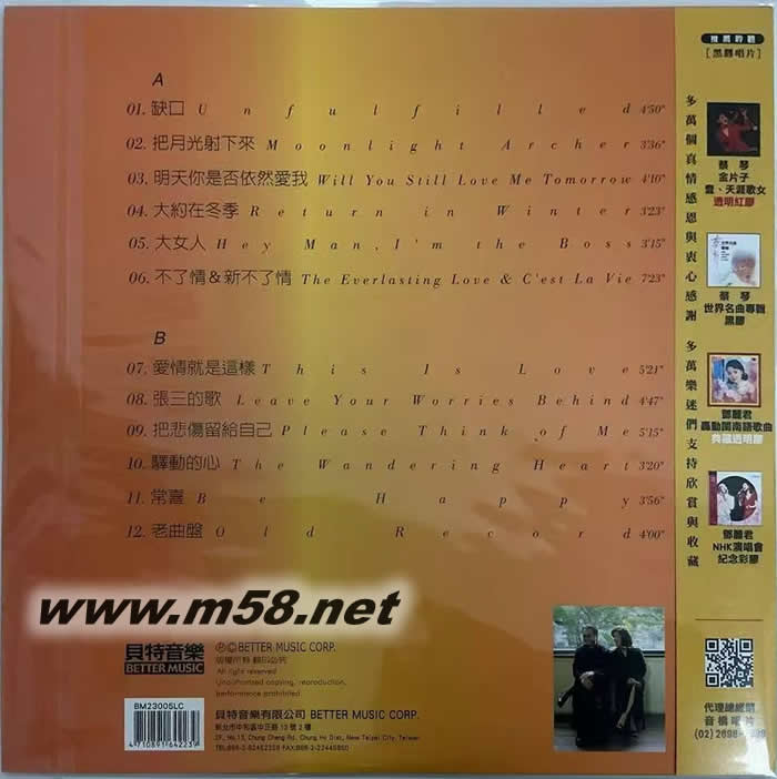 蔡琴&鮑比達(dá) 遇見 180g 33RPM LP 透明黃膠 黑膠 限量版專輯背面圖片