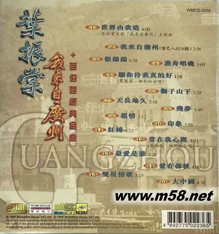 我來自廣州 葉振棠 百分百經典金曲 金碟專輯背面圖片