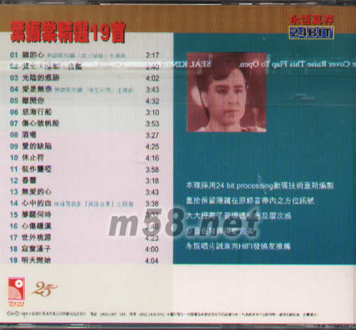 葉振棠精選19首(m58.net) 本碟采用24 bit processing數碼技術重新編制 重拾保留隱藏在原錄音帶內之方位訊號 大大提高了音場透明度及層次感 令音色發揮得更完美 永恒唱片誠意向HIFI發燒友推薦