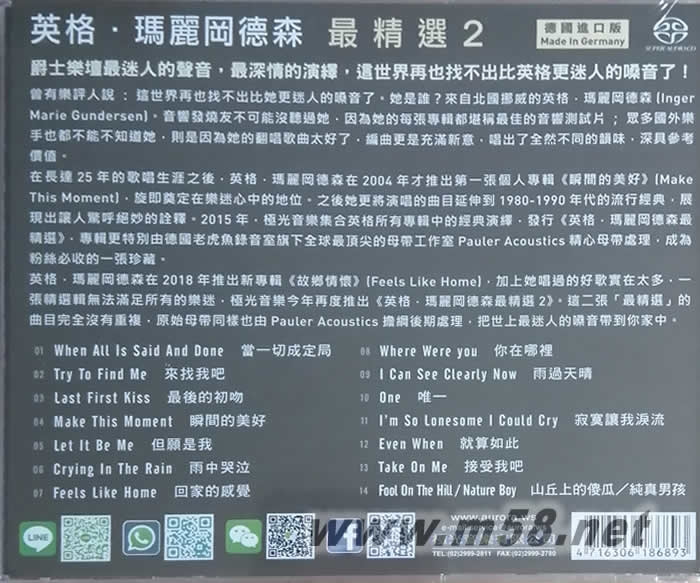 英格瑪麗岡德森最精選 2 北歐爵士女伶The Best Of Inger Marie Gundersen Vol. 2 SACD專輯背面圖片