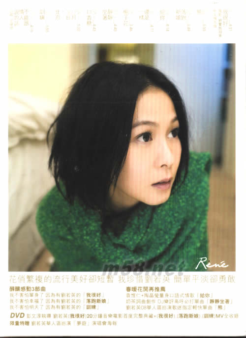 我很好初春限定影音版(m58.net) 我總是聽著一遍遍劉若英,然后懂得把愛找回來。 我知道到處都下載得到劉若英的歌,但我知道下載不到的是 她讓我找到 對自己幸福負責的決心。 初春限定影音版 1 CD+ 1 DVD+ 1風靡全華人「夢游」演唱會造型海報 DVD:彭文淳執導 劉若英「我很好」20分鐘音樂電影首度完整典藏+「我很好」、「落跑新娘」、「訓練」MV全收錄 限量特贈 劉若英華人區巡演「夢游」演唱會海報 本版本全球限量5000pcs,銷售完畢后絕版,回復第一版本銷售。 花俏繁復的流行美好卻短暫 我珍惜劉若英 簡單平淡卻勇敢 醇釀感動3部曲 我不害怕單身了 因為有劉若英的「我很好」 我不害怕幸福了 因為有劉若英的「落跑新娘」我不害怕明天了 因為有劉若英的「訓練」 春暖花開再推薦 袁惟仁+陶晶瑩量身口語式情歌「給你」 奶茶詞曲創作 DJ樂評高呼必打單曲「靜靜坐著」劉若英‘08華人區巡演歌迷指定輕快單曲「熊」