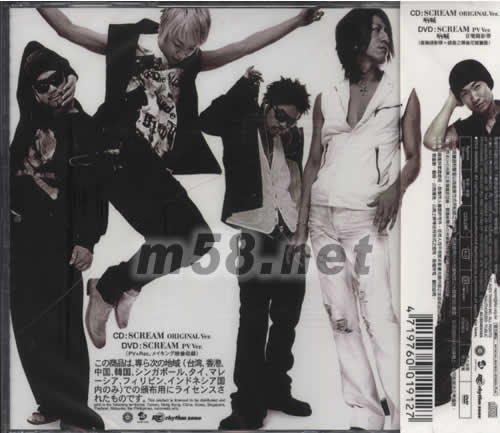 價格為估,以實到貨為準! 吶喊SCREAM(m58.net) 2005最話題的夢幻合作GLAY×EXILE放浪兄弟,推出結合搖滾與舞蹈的嶄新單曲「SCREAM吶喊」。單曲「SCREAM吶喊」有一般版本和限量封面珍藏版兩種版本,皆為CD+DVD形式。而此版本為一般版本的初回限定版。DVD收錄內容長達7分鐘的「SCREAM吶喊」精采音樂錄影帶 & 錄音之幕後花絮畫面;一般版本通常盤的DVD則無收錄幕後花絮畫面。初回限定版完全限量,售完將推出普通版,預購請從速!!