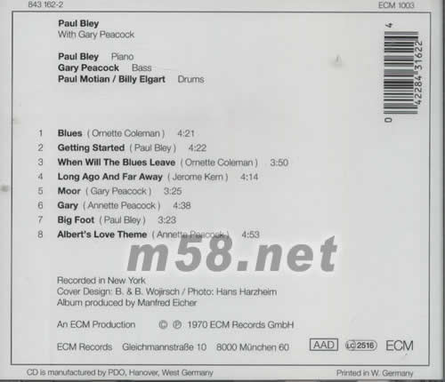 所屬歌手:   [PAUL BLEY] [ECM唱片公司系列]