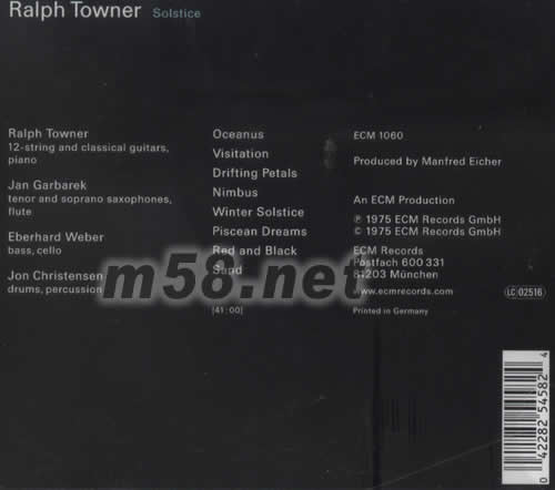 RALPH TOWNER 12-STRING AND CLASSICAL GUITARS PIANO JAN GARBAREK TENOR AND SOPRANO SAXOPHONES FLUTE EBERHARD WEBER BASS,CELLO JONCHRISTENSEN DRUMS,PERCUSSION OCEANUS VISITATION DRIFTING PETALS NIMBUS WINTER SOLSTICE PISCEAN DREAMS RED AND BLACK SAND
