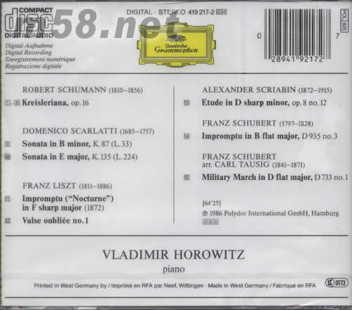 霍洛維茨在莫斯科Horowitz in Moscow 西德版 (CD) 1986/6/30