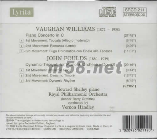 PIANO CONCERTO IN C 1.IST MOVERMENT:TOCCATA (ALLEGRO MODERATO) 2.2ND MOVERMENT:ROMANZA(LENTO) 3.3RD MOVERMENT:FUGA CHROMATICA CON FINALE ALLA TEDECA JOHN FOULDS (1880-1939) DYNAMIC TRIPTYCH FOR PIANO & ORCHESTRA OP.88 4.1ST MOVERMENT:DYNAMIC MODE 5.2ND MOVERMENT:DYNAMIC TIMBRE 6.3RD MOVERMENT:DYNAMIC RHYTHM