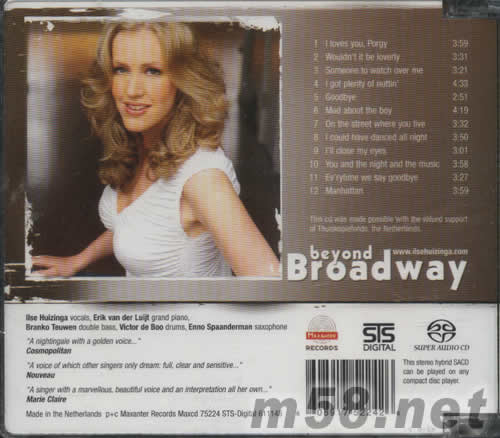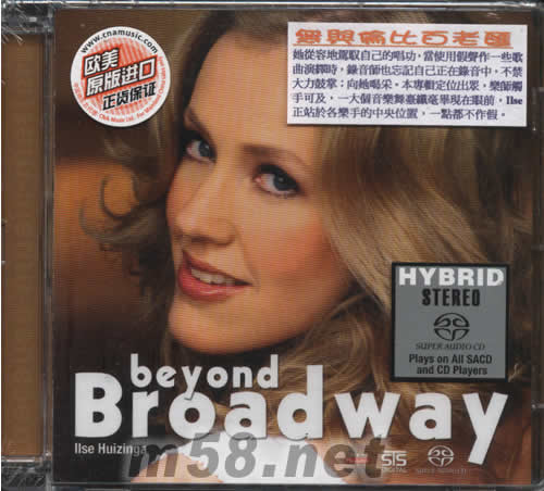 BEYOND BROADWAY無與倫比百老匯SACD(m58.net) 她從容地駕馭自己的唱功,當使用假聲作一些歌曲演繹時,錄音師也忘記自己下在錄音中,不禁大力鼓掌;向她喝采。本專輯定位出眾,樂師觸手可及,一大個音樂團展現你的眼前,Ilse正站于各樂手的中央位置,一點都不作假。