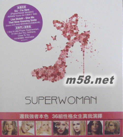 SUPER WOMAN 超級女巨星精選(m58.net) Sony Music推出 全女班雜錦2CD – “Superwoman”, 收錄34首不同音樂風格歌曲, 盡顯現(xiàn)今時代女性不同性格及Girl Power! 包括”盛女大作戰(zhàn)”片頭歌, Diana King – “I Say A Little Prayer”, Alicia Keys – “If I Ain’t Got You”, Karyn White – ‘Superwoman”, Avril Lavigne – “Girlfriend”, Kelly Clarkson – “What Doesn’t Kill You (Stronger)”, Lisa Ekdahl – “Give Me That Slow Knowing Smile” (Canon相機廣告歌), Ke$ha – “Tik Tok”以及P!nk – “Get The Party Started” 等.
