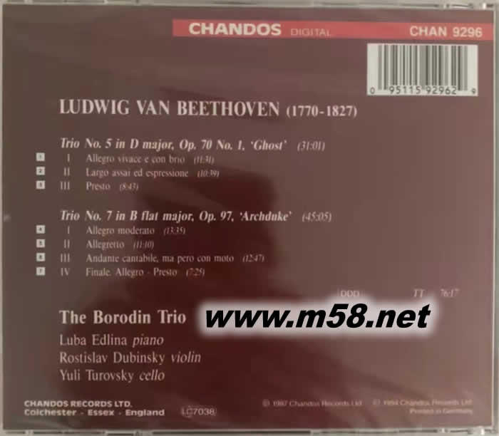 貝多芬鋼琴三重奏BEETHOVEN PIANO TRIOS OP.70 NO.1 GHOST(鋼琴、小提琴、大提琴)專輯背面圖片