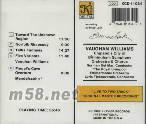 1 TOWARD THE UNKNOWN REGION 2 NORFOLK RHAPSODY 3 TALLIS FANTASIA 4 FIVE VARIANTS VAUGHAN WILLIAMS 5 FINGAL'S CAVE OVERTURE MENDELSSOHN