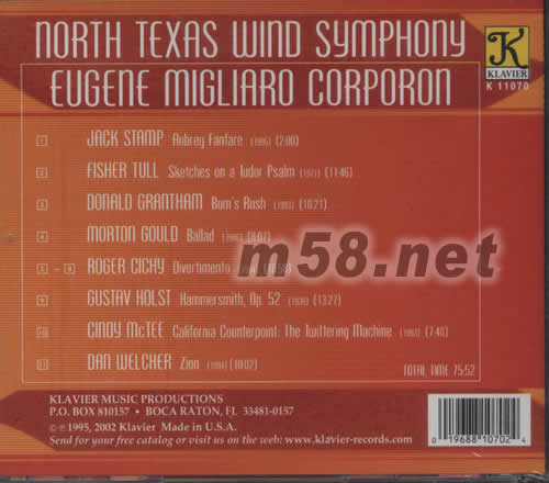 所屬歌手:   [NORTH TEXAS WIND SYMPHONY北得克薩斯州交響樂團] [KLAVIER公司古典系列]