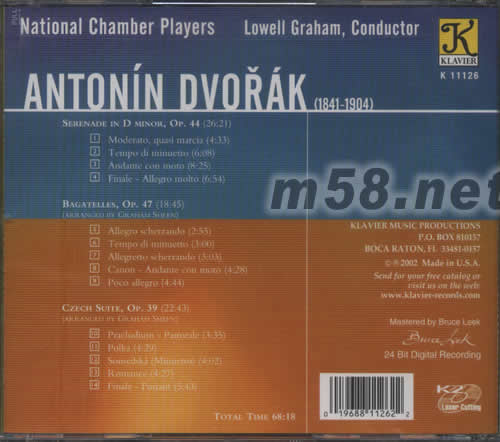 所屬歌手:   [NATIONAL CHAMBER PLAYERS美國(guó)國(guó)家室內(nèi)樂(lè)團(tuán)] [KLAVIER公司古典系列]