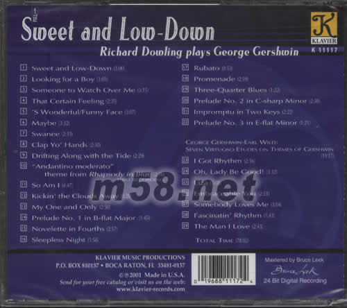 甜蜜與低落SWEET AND LOW DOWN(格什溫鋼琴作品集)專輯背面圖片