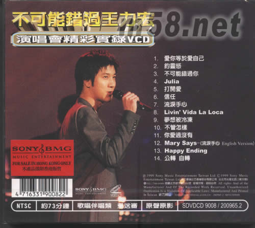 不可能錯過你演唱會精彩實錄VCD(m58.net) 千禧年前王力宏演唱會現場全記錄 王力宏精彩魅力放送,音樂盛典實力迸射 身歷其境的動人畫面瞬間永恒記憶