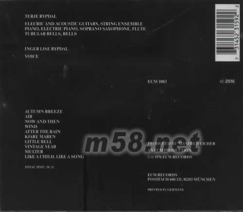 AFTER THE RAIN(m58.net) 挪威爵士吉他手,爵士音樂家Terje Rypdal是當代歐洲爵士的重要代表人物,是北歐爵士的明星之一;更被譽為吉他之神。他的演奏,把New Age音樂、搖滾和爵士樂的各種元素糅合在一起,創造出自己獨特的風格。