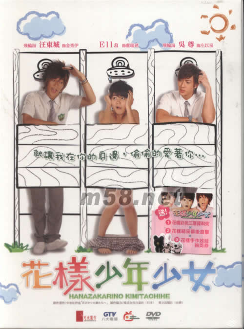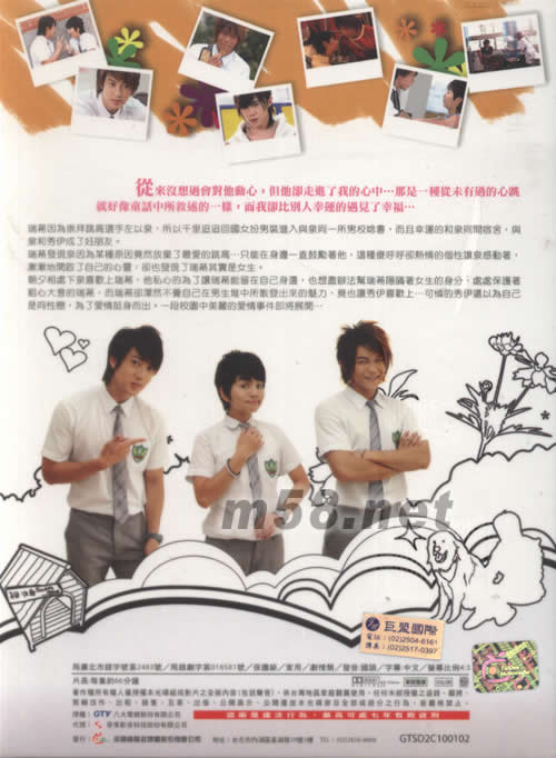 花樣少年少女DVD中套(6-10)(臺灣版)(m58.net) *八大今年度最強偶像劇,繼【惡作劇之吻】后影迷最期待的浪漫愛情喜劇。 *網羅超人氣偶像團體【飛輪海】中最具魅力的吳尊、汪東城以及【S.H.E.】中以【薔薇之戀】獲得各方肯定的Ella共同主演,肯定再掀偶像劇收視熱潮。 *改編自日本暢銷漫畫【偷偷愛著你】,將花樣年華的校園故事,以夢幻般的浪漫手法呈現,讓小女孩美夢成真。 *每個小女孩在成長的過程中都會歷經暗戀的過程,面對心儀的男生,臉紅、怦然心動的感覺是少女時期最甜蜜的記憶,本片將這初戀酸甜的滋味透過偶像劇的演出勾起觀眾甜美的記憶。 【劇情簡介】 從來沒想過會對他動心,但他卻走進了我的心中… 那是一種從未有過的心跳,就好象童話敘述的一樣, 而我卻比別人幸運地遇見了幸福… 瑞莃因為崇拜跳高選手左以泉,所以千里迢迢回國女扮男裝進入與泉同一所男校念書,而且幸運的和泉同間宿舍,與泉和秀伊成了好朋友。 瑞莃發現泉因為某種原因竟然放棄了最愛的跳高…只能在身邊一直鼓勵著他,這種傻呼呼卻熱情的個性讓泉感動著,漸漸地開啟了自己的心靈,卻也發現了瑞莃其實是女生。 除了泉外就只有校醫梅田發現了瑞莃是女兒身,他負責每天開導著瑞莃訴說對泉的愛情煩惱,而此時第三宿舍也由思南帶領著大家向前沖,梅田洞悉著宿舍間充滿逗趣的良性競爭,一段校園中美麗的愛情事件即將展開…… 集 數:6-10,共5集(全劇15集) 片 數:共 2 片 級 別:輔導級 規 格:D9 x 1 + D5 x 1 片 長:每集約65分鐘 發 音:國語 字 幕:繁體中文 螢 幕 比:4:3 音 效:AC3 2.0 Ch 特別說明:每集均附幕后直擊一則