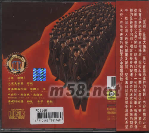 原鄉(xiāng)(m58.net) [原鄉(xiāng)]是羅大佑第一張以臺語為主干的專輯,內(nèi)容在描述臺灣社會現(xiàn)狀的燥動時直指痛處,撩撥起每一顆人心潛伏的不安、驚恐。從一首歌[火車]開始,聽著便已搭上一列時間的列車,循著歷史運轉(zhuǎn)的足跡緩步向前,唱試在歷史的變遷、現(xiàn)時的迷惑與對未來的期待中,找出臺灣人最后的歸屬及認同。整張專輯詞意旋律中潛藏的希望火花,在所有表象的燥動不安中隱隱閃動。