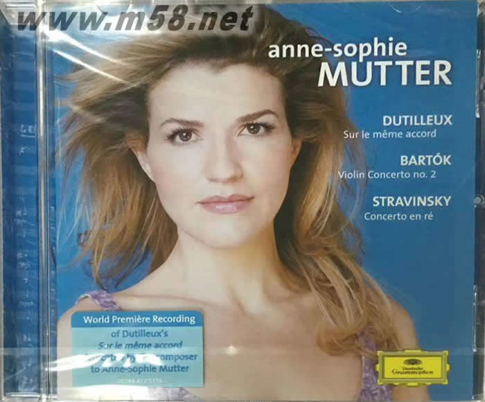 Bartok & Stravinsky:Violin Concerto 巴托克 & 斯特拉文斯基:小提琴協奏曲(古典愛好者必備)(m58.net) 由安妮-索菲?穆特小提琴演奏的《巴托克 & 斯特拉文斯基:小提琴協奏曲》,2009年的《企鵝古典唱片指南》中推薦為三星。 這是小提琴女神穆特2005年灌制發行的專輯,里面收錄了巴托克的《第二小提琴協奏曲》、斯特拉文斯基的《小提琴協奏曲》,以及迪蒂耶的《在同一個和弦上》。由庫爾特?馬紹爾指揮法國國家樂團,小澤征爾指揮波士頓交響樂團,保羅?撒切爾指揮愛樂樂團演奏。激情是20世紀演奏家不可缺少的重要因素,穆特的演奏可謂是活力四射、激情澎湃。她最善于用自己獨特的骨力將作品支撐起來,深得骨秀之精華。清澈而明凈的音色,處處體現出她高雅的口味,與眾不同的氣質,無人可以比肩,入木三分的表達,具有一種晶瑩的光芒。小提琴下的音符猶如一顆顆流星,劃破夜的沉夜。 這是穆特新婚之后的第四張唱片,穆特在這張專輯中的表現可用“一個華麗的鼓吹者”來形容,對于巴托克和斯特拉文斯基的作品,穆特早期并不能夠充分把握,但是亨利?迪蒂耶的作品似乎使得她忽然之間開竅,使得后面的兩首作品充滿了豐富的細節微調和技藝的靈巧展現。里面更多了音樂的抒情性,使小提琴獨奏和樂隊顯得更為和諧,給音樂賦予了更多柔美和細膩的情感及更現代的表現手法。 擔任此張唱片的指揮之一是與穆特最為信賴的庫特?馬舒爾(Kurt Masur),此前他們曾有過兩次精彩的合作,分別是1997年現場錄音的勃拉姆斯《小提琴協奏曲》以及2002年現場錄音的貝多芬《小提琴協奏曲》,均由馬舒爾指揮紐約愛樂樂團。穆特的演奏感情細膩而豐富,音色優雅又不失激情,技巧無懈可擊,似乎她在琴弦上舞動著自己迷人的身軀,使人想到她性感的眼神與身段的柔軟。同時馬舒爾指揮的法國國家管弦樂團在巴黎著名的香榭麗舍劇院現場錄制,音色極為含蓄動人,獨奏、樂隊、錄音三位一體,使這場現場錄音再次成為穆特演奏生涯上很難逾越的精品。 安妮-索菲?穆特為德國小提琴演奏家。1963年6月29日出生于南德意志巴登的萊因費爾頓。穆特是一位典型的德奧血統的演奏家,性格熱情,具有著嚴謹的思維邏輯和內在個性,這使她形成了優良的演奏素質和高品位的藝術修養。卡拉揚去世后,她的演奏向多元化發展,曲目不局限于德奧古典、浪漫等傳統作品,而加強了近現代作品的比重,經常演出盧托斯瓦夫斯基(WitoldLutoslawski)、莫雷(NorbertMoret)、彭代雷茨基和里姆(WolfgangRihm)等人的作品。