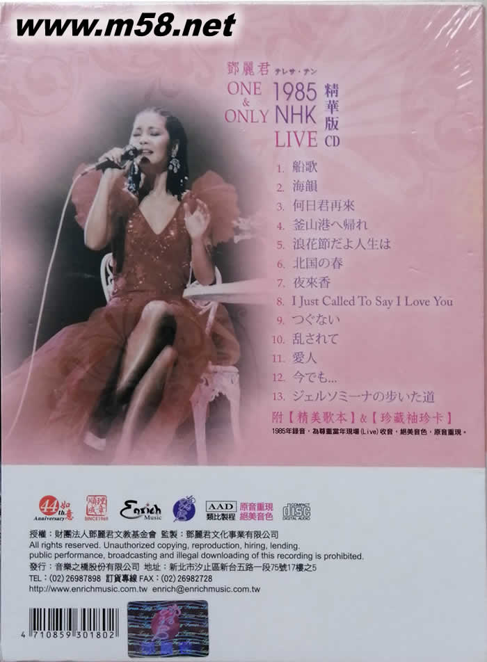 鄧麗君1985 NHK 東京演唱會精華版 限量版 CD 粉紅封面(m58.net)