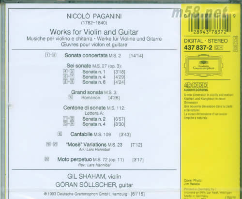 吉爾 沙漢姆 & 格蘭 索爾舍 帕格尼尼 提琴與吉他PAGANINI FOR TWO WORK FOR VIOLIN AND GUITAR(古典愛好者必備)專輯背面圖片