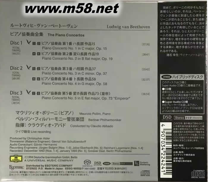 貝多芬第五鋼琴協奏曲 Beethoven: Piano Concerto DIE .5 三SACD JJSGTHGC專輯背面圖片