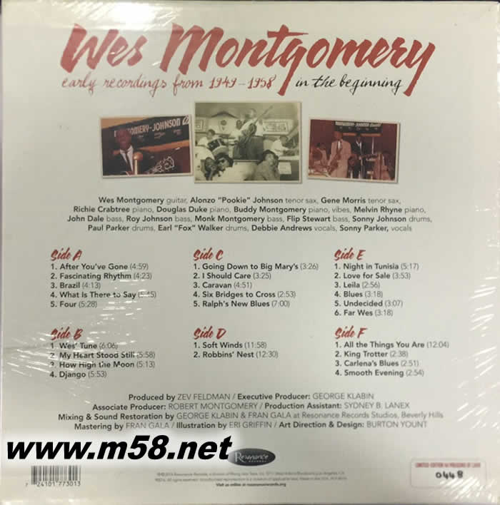 黑膠唱片 1 1. After You've Gone 2. Fascinating Rhythm 3. Brazil 4. What Is There to Say ? 5. Four 6. Wes' Tune 7. My Heart Stood Still 8. How High the Moon 9. Django 黑膠唱片 2 1. Going Down to Big Mary's 2. I Should Care 3. Caravan 4. Six Bridges to Cross 5. Ralph's New Blues 6. Soft Winds 7. Robbins' Nest 黑膠唱片 3 1. A Night in Tunisia 2. Love for Sale 3. Leila 4. Blues 5. Undecided 6. Far Wes 7. All the Things You Are 8. King Trotter 9. Carlena's Blues 10. Smooth Evening