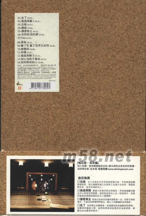 01. 走了 02. 進退兩難I 03. 出嫁 04. 邂逅 05. 讓愛做主 06. 你的愁我的夢 07. Fire 08. 漂鳥 09. 輸了你贏了世界又如何 10. 暗戀你 11. 時機 12. 進退兩難Ⅱ 13. 別以為我不會走 14. 我的歌我的心