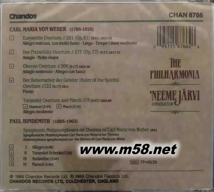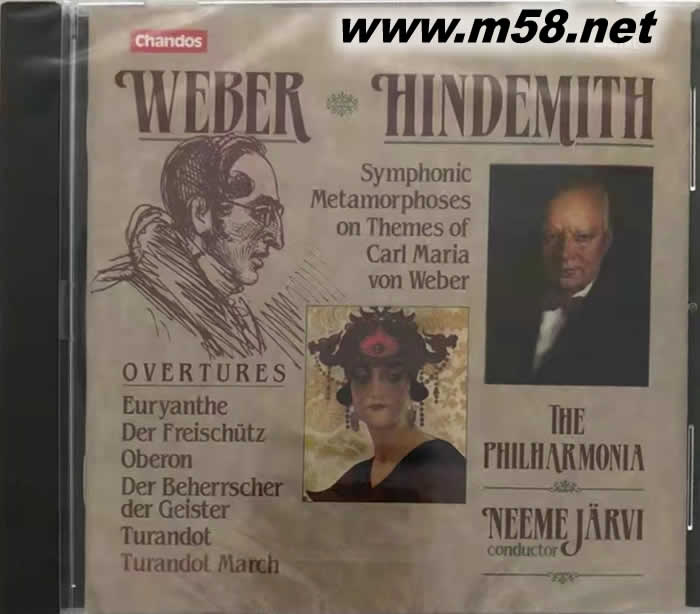 韋伯:歌劇序曲“歐麗安特”“奧伯龍”“幽靈的統治者”,圖蘭多特序曲與進行曲,辛德米特:韋伯主題變型交響曲,雅爾維指揮,英國愛樂樂團,企鵝三星名盤!