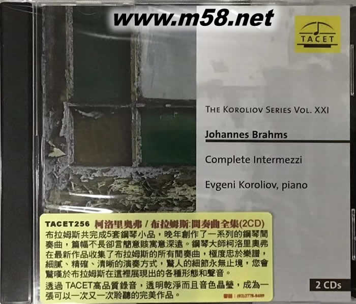 鋼琴大師柯洛里奧弗(Evgeni Koroliov)在最新作品收集了布拉姆斯的所有間奏曲,極度忠於樂譜,細膩、精確、清晰的演奏方式,驚人的細節永無止境,踏板的劑量,音平面的平衡,節奏的寧靜,注意沉默;樂器的絲般柔和的聲音也使人著迷,您會驚嘆於布拉姆斯在這里展現出的各種形態和聲音。