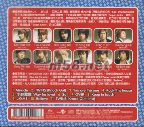 首支單曲(TWINS(KNOCK OUT))偏重拍快節奏曲風,在描術對于愛情的內心掙扎,天使與魔鬼的天人交戰。 甜美抒情歌曲(YOU ORE THE ONE),描述著情人間永遠不變的愛情。溫柔的旋律加上SUPER JUNIOR唯美的歌聲,在寒冷的季節,同樣溫暖你的心:另外,還收錄了翻唱自日本團體“放浪兄弟(EXILE)”的歌曲(BELIEVE)。 秀自己,12人12色的勇敢表現,這就是SUPER JUNIOR!請注意這些少年超男,亞洲“明日”之星就在你眼前??!