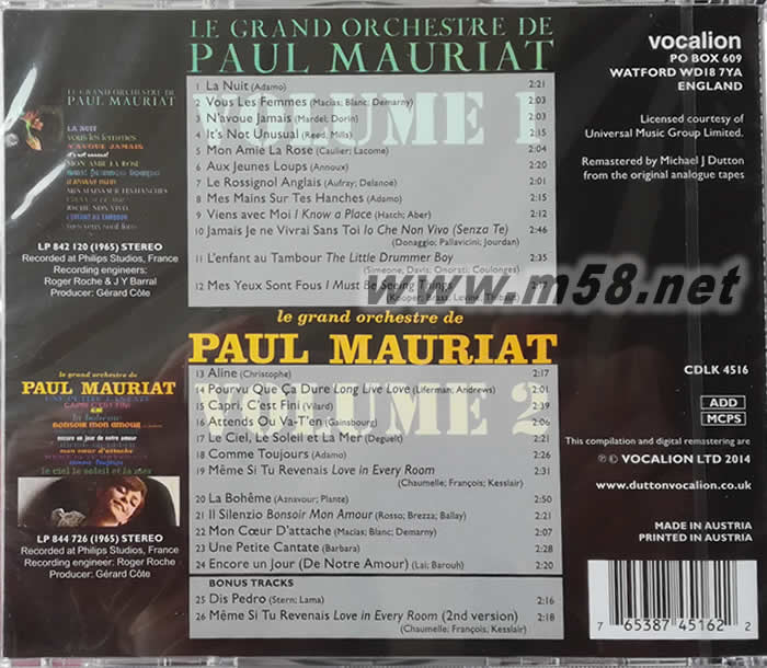 保羅莫里哀 - 華麗樂章 VOLUMES 1& 2專輯背面圖片