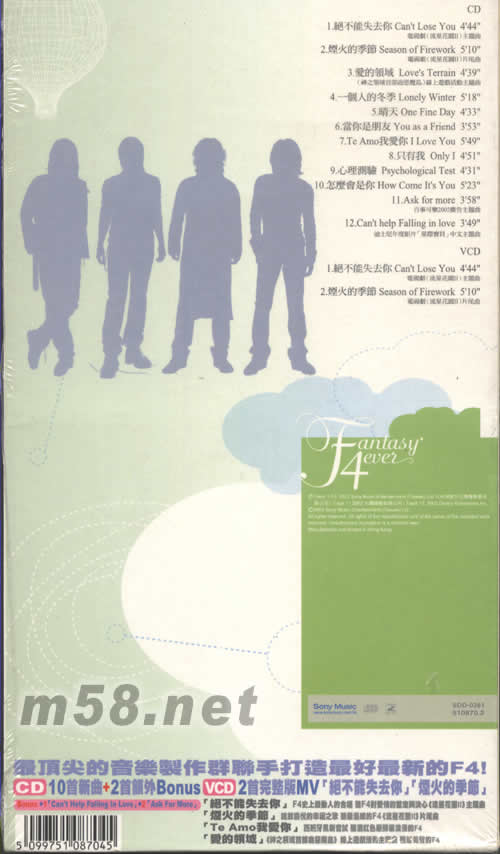 價格為估,以實到貨為準(zhǔn)! Fantasy 4 ever煙火的季節(jié)(第二版)(m58.net) 請點看產(chǎn)品正、背面大圖 12首新曲CD +VCD 2首完整版主打MV《絕不能失去你》《煙火的季節(jié)》