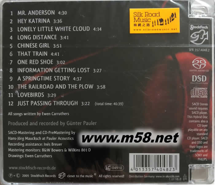 錄音品質當然是Stockfisch最不需要我們擔心的要素。「倒轉時光」已經是許多音響媒體一面叫好的唱片,「一只紅鞋」在錄音上竟然能更上層樓,展現出更溫暖、更寬鬆也更具巧思的聲音舞臺!醇厚的男聲在音響系統上已經非常迷人,而吉他的撥奏比起以往的Stockfisch專輯竟然能顯出更活潑、立體的質感,就連手指的動作都比起前作更清晰更乾凈!雖然SACD僅有立體聲而沒有多聲道,但是Stockfisch越來越精進的錄音技術,讓這張唱片光是兩聲道已經能夠展現出非常好的三度空間感。民謠樂迷、音響迷們又有一張得收藏的優秀唱片了!