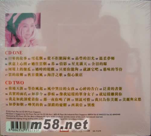 CD ONE 01. 口琴的故事 02. 雪花飄 03. 從不拒絕歸來 04. 晶瑩的淚光 05. 溫柔夢鄉 06. 秋意上心頭 07. 過往云煙 08. 暮 09. 倩影 10. 星光滿天 11. 含淚的眼 12. 河堤上的傻瓜 13. 過時的游戲 14. 只要你能夠 15. 就讓它吧 16. 愚昧的等待 17. 云的故鄉 18. 秋日微風 19. 海洋之歌 20. 傷心旅店 CD TWO 01. 浪跡天涯 02. 等待風起 03. 風中哭泣的女孩 04. 心碎的告白 05. 泛黃的書簽 06. 真實的面孔 07. 如夢令 08. 夢痕 09. 像我這樣的單身女子 10. 就這樣離開你 11. 我是如此深愛著你 12. 那一夜你喝了酒 13. 別說可惜 14. 我只為你美麗 15. 美麗與哀愁 16. 如夢如煙 17. 嘩笑的街 18. 深鎖的憂郁 19. 西莉亞 20. 別后