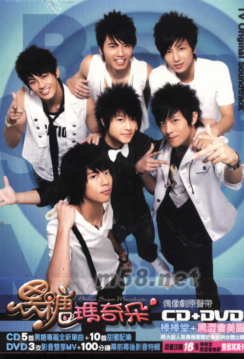黑糖瑪奇朵 偶像劇原聲帶 (臺灣雙封面版)(m58.net) 棒棒堂+黑澀會美眉, 兩大超人氣偶像團體史無前例合體出輯 超值加贈16張棒棒堂 黑澀會美眉雙面寫真卡 CD5首黑糖專屬全新單曲+10首甜蜜配樂 DVD 3支影音雙享MV+100WV幕前幕后影音特輯