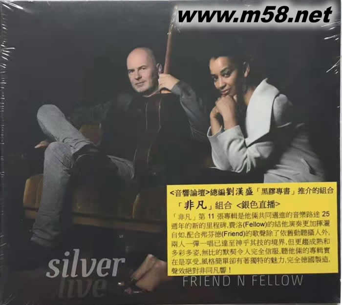 非凡 銀色直播 (Friend’n Fellow [Silver Live]) 劉漢盛推介(m58.net) 康絲丹思.弗芬德(Constanze Friend)磁性豪邁的歌聲配合唐瑪斯.費洛(Thomas Fellow)出神入化的結他技巧所組成的「非凡」(Friend’n Fellow)發燒組合至今舉行了超過1000場的音樂會,專輯銷量超過100,000張,征服了不少樂迷,雄霸歐洲樂壇多年,晶瑩剔透的歌聲和鏗鏘而充滿張力的結他聲是這組合最令人神往的特徵。「非凡」上張專輯【發現(Discovered)】入選<音響論壇>總編—劉漢盛「黑膠專書」推介,音效臻達完美的境界,是高級專業音響界指定的示范盤之一。「非凡」用心創作的第十一張專輯<銀色直播(Silver Live)>是他倆共同邁進的音樂路途25週年的新的里程碑,費洛的結他演奏更加揮灑自如,配合弗芬德的歌聲除了依舊動聽攝人外,兩人一彈一唱已達至神乎其技的境界,但更趨成熟和多彩多姿,無比的默契令人完全信服,聽他倆的專輯實在是享受,風格簡單卻有著獨特的魅力,完全德國製造,聲效絕對非同凡響!